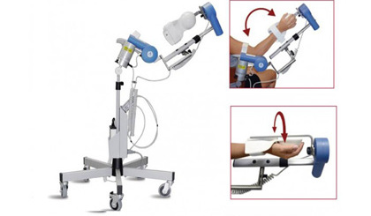 L'artromot E-2 è l'unico dispositivo cpm che consente di effettuare CONTEMPORANEAMENTE il movimento di flesso-estensione e prono-supinazione del gomito.